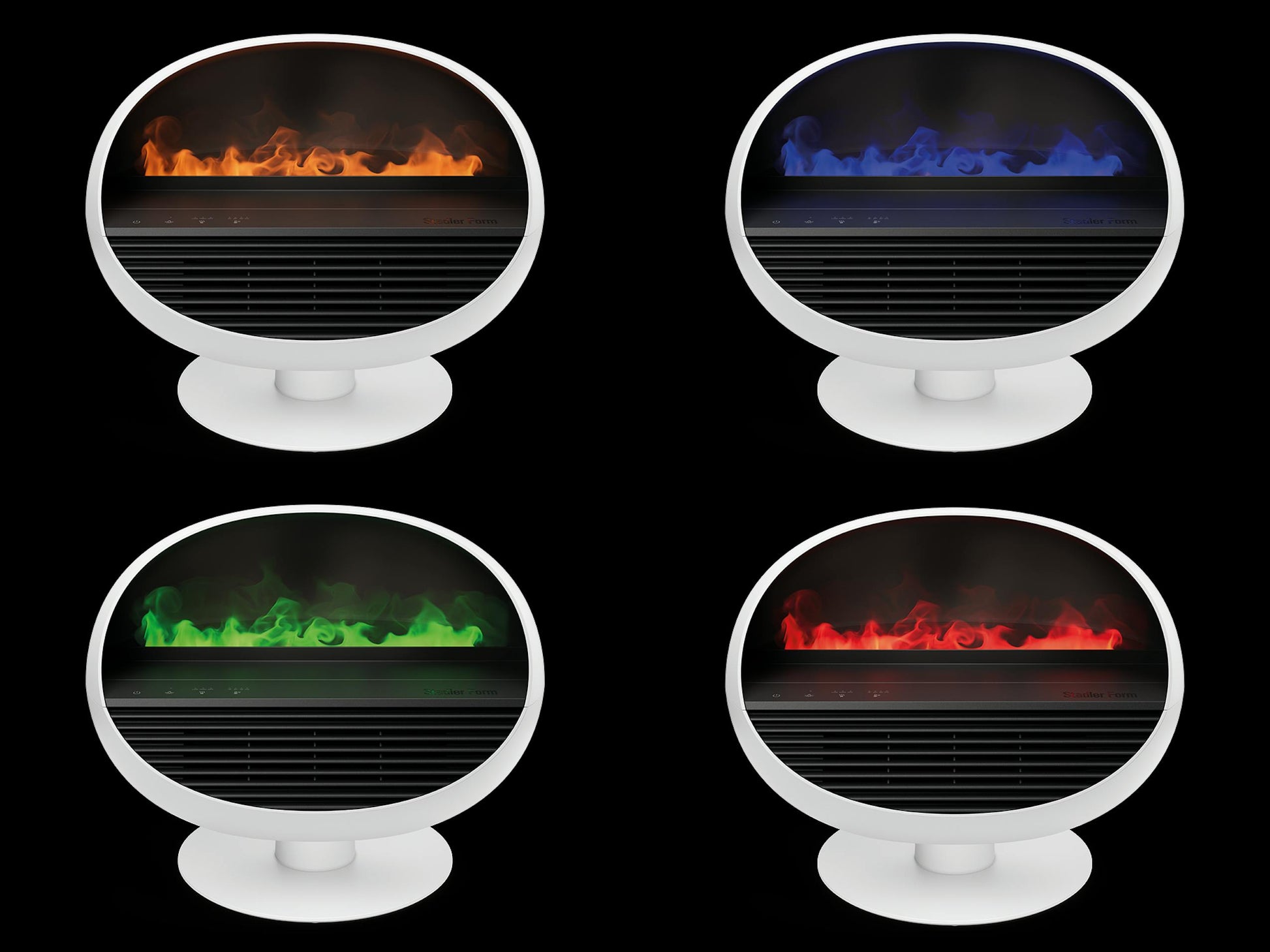 Erik bietet vier stimmungsvolle Flammenfarben, die je nach Ambiente gewählt werden können: