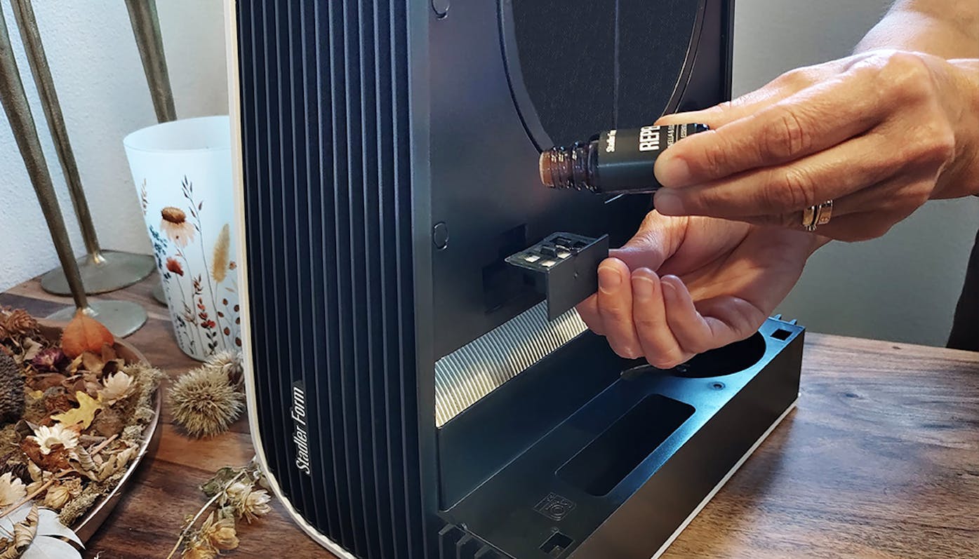 Ein weiteres Highlight ist der integrierte Duftstoffbehälter: So kann die gereinigte und befeuchtete Luft gleichzeitig mit ätherischen Ölen aromatisiert werden – für ein rundum wohltuendes Raumklima.