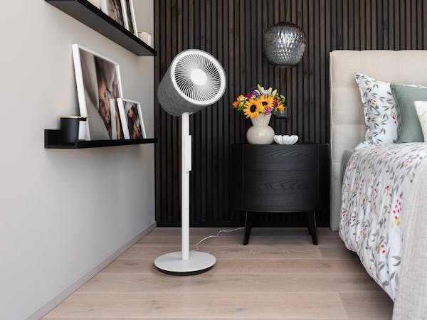 Der Ventilator Simon sorgt für eine kraftvolle, gleichmäßige und zugleich besonders leise Luftzirkulation – ideal für Wohnräume, Büros oder Schlafzimmer. Dank moderner 3D-Oszillation verteilt Simon die Luft horizontal und vertikal und erreicht dabei eine Winddistanz von bis zu 10 Metern. So wird selbst in großen Räumen für ein angenehmes Raumklima gesorgt.